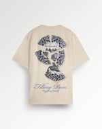 The T-shirt Broken Plate is crafted from a premium 210 gsm organic cotton, offering a high-quality, structured feel. This seasonal Skyway version provides a fresh backdrop for its outspoken 'Broken Plate' graphic—our modern interpretation of traditional Delfts Blauw, showcasing the Dutch canals. This artwork symbolizes the good luck associated with plate shards in several cultures and the celebratory tradition of breaking plates. Cut for a modern, boxy fit, this tee is a true statement piece.