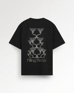 This essential artwork tee captures the celebratory spirit of the SS26 collection. The T-shirt Champagne is crafted from a premium 210 gsm organic cotton, offering a high-quality, structured feel. This classic Black version provides a striking backdrop for its 'Champagne Tower' graphic. This artwork symbolizes celebration and being together, with its wavy, fluid shapes consciously contradicting the hard, straight norms of reality.