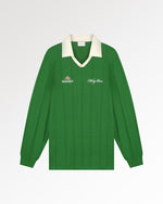 This Heineken version of our classic and retro football jersey is presented in a sophisticated Antique White with green color details at the collar and branding. The garment is made with a premium knit that features a distinctive cable/chain structure, giving it extra depth and a luxurious feel. The back is finished with premium embroidery of the signature Heineken logo and the Filling Pieces script logo. This piece seamlessly merges vintage athletic style with high-end fabrication.