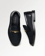 This is a testament to artisanal heritage. The Loafer Panier is a true hero piece, defined by its custom-designed, ratan-engineered upper developed in collaboration with specialized Spanish ateliers. The intricate, woven upper is crafted on a microfiber base with special embroidery degrade thread. Finished in Portugal, this Black loafer is elevated with Polido leather trim and our custom hand-shake hardware.