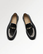 The iconic Patch Loafer provides a polished canvas for this season's story, crafted from high-shine polido leather for a timeless foundation. Its character is defined by a detailed chenille and embroidery patch depicting a 'Speaker Wall' from a fictional 80s block party. A tribute to the raw energy of street culture, this shoe is a key expression of the 'United by Rhythm' collection's focus on community and shared sound.